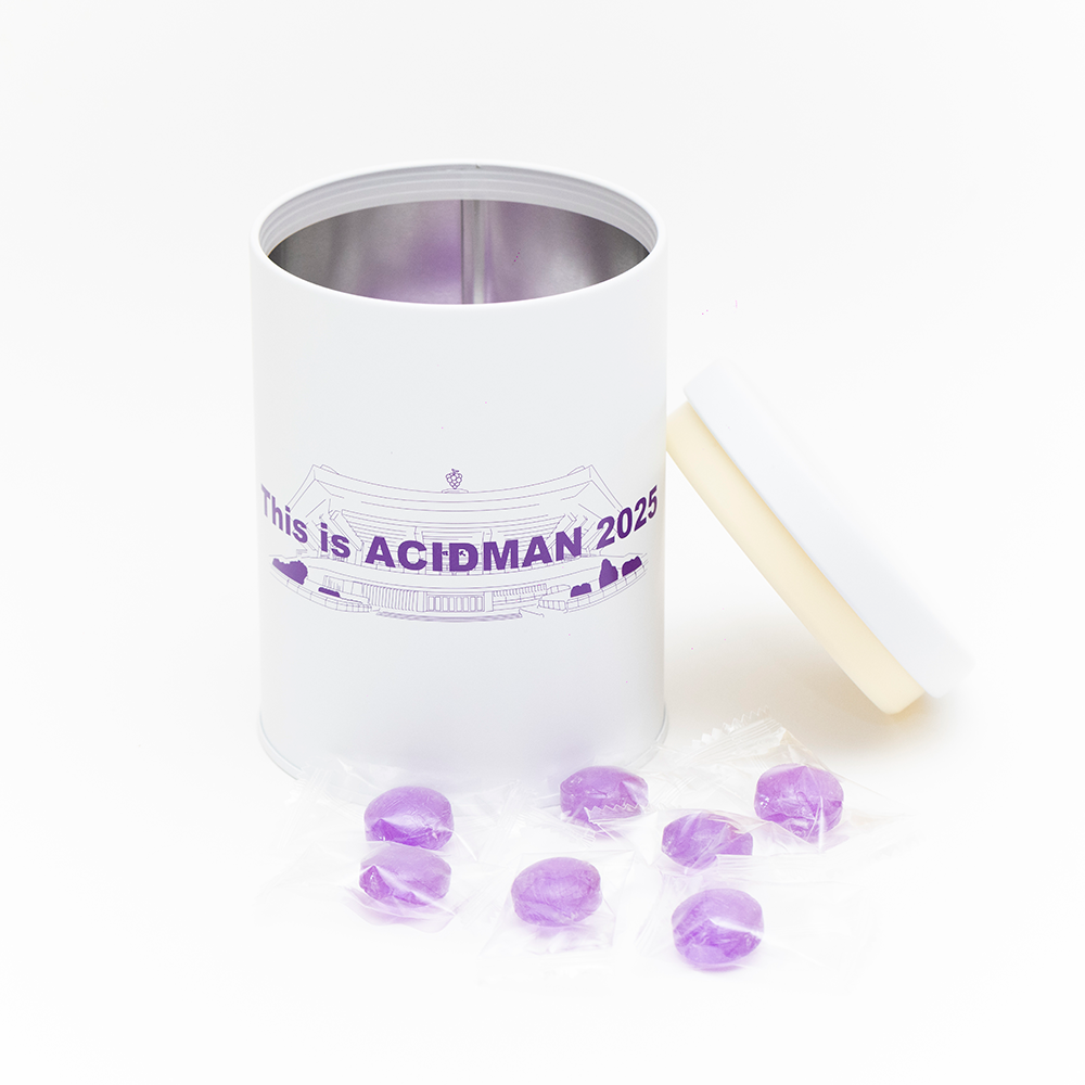 ツアータイトル”This is ACIDMAN 2025”とファイナル公演である日本武道館モチーフ上にブドウを配したACIDMAN初の缶入りのキャンディ。
