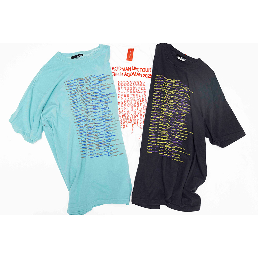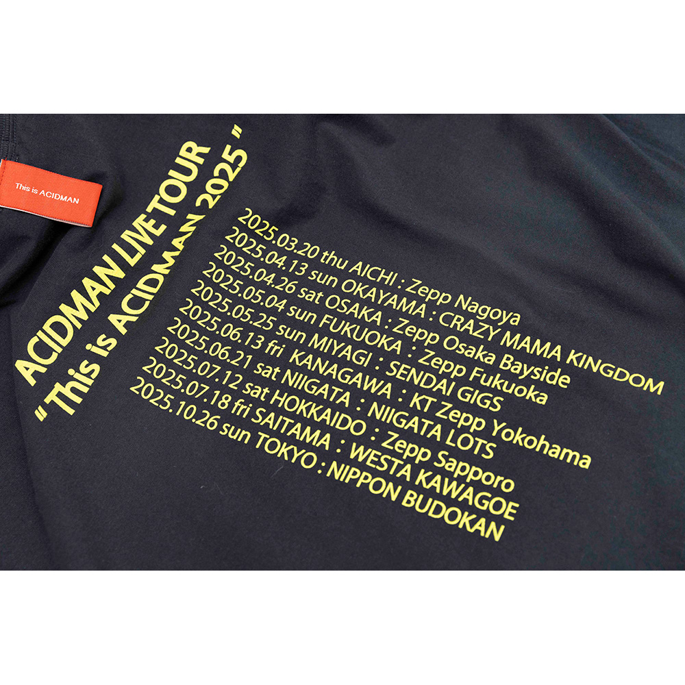背面にはツアースケジュール、首元には真紅とベージュのThis is ACIDMANタグを配置。