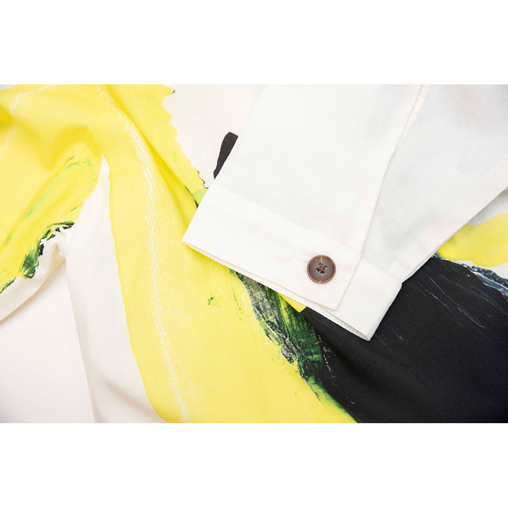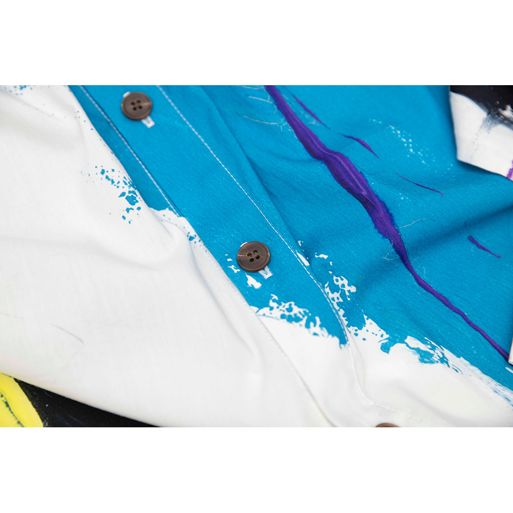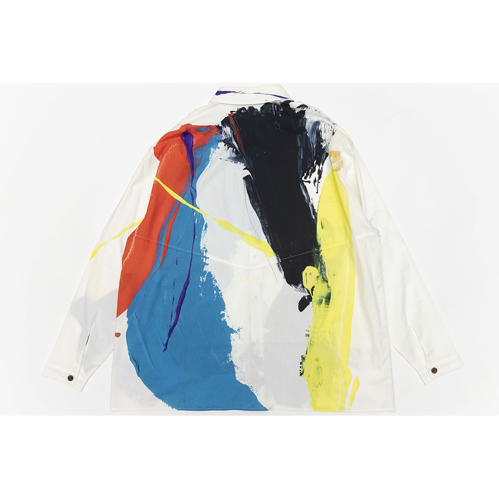大木描画の白と黒ジャケットをモチーフに、総柄シャツを作製。