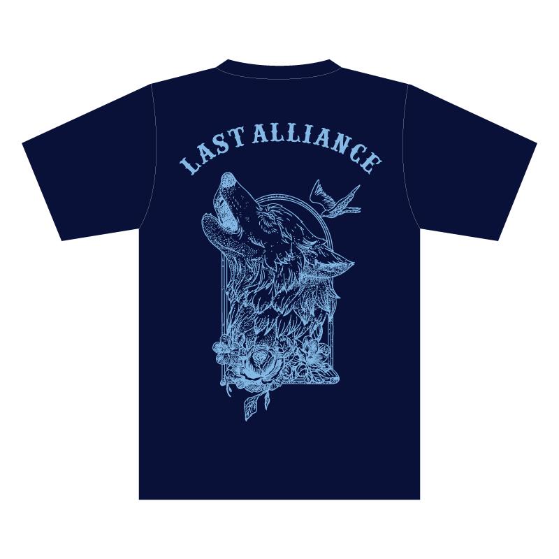 フロントの右胸とバックに青い狼をデザインした最新Tシャツ。ボディーカラーは珍しいネイビー仕様。